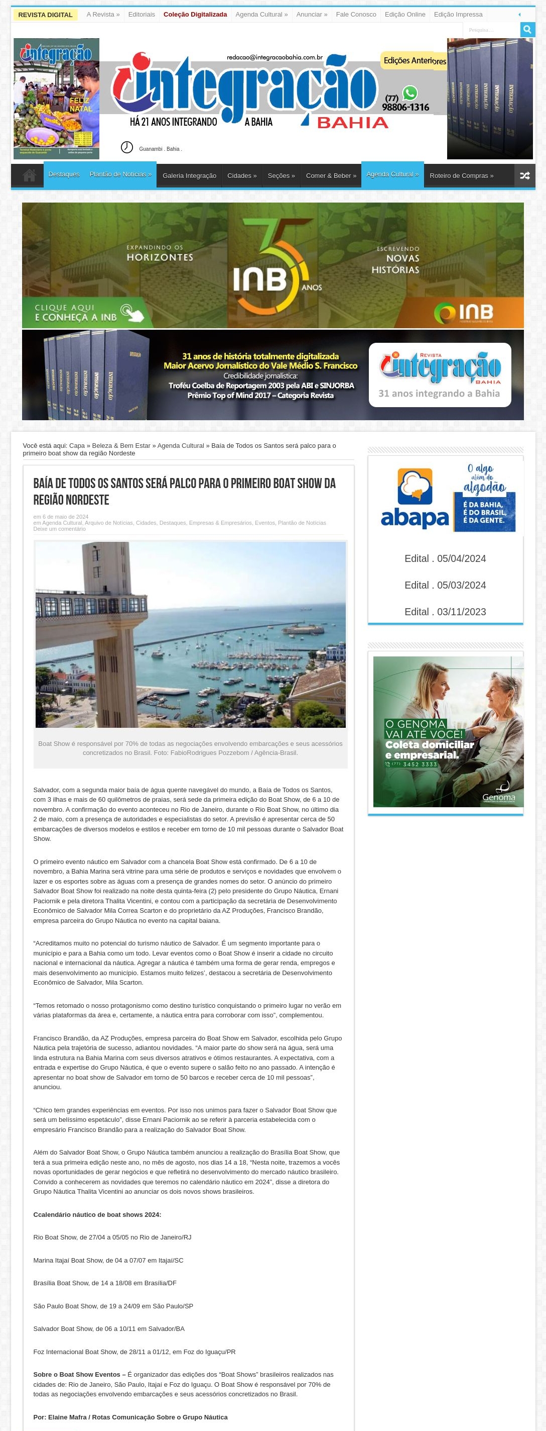 Baía de Todos os Santos será palco para o primeiro boat show da região Nordeste REVISTA INTEGRAÇÃO BAHIA :: Guanambi . Bahia