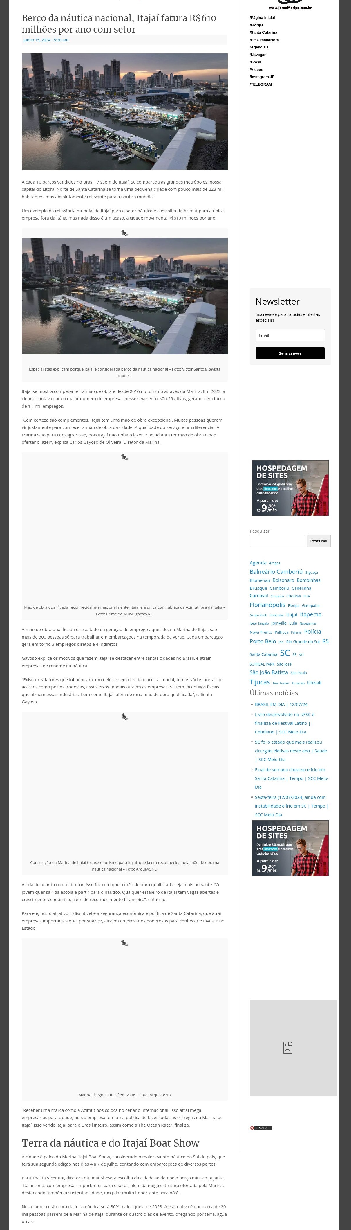 Berço da náutica nacional, Itajaí fatura R$610 milhões por ano com setor