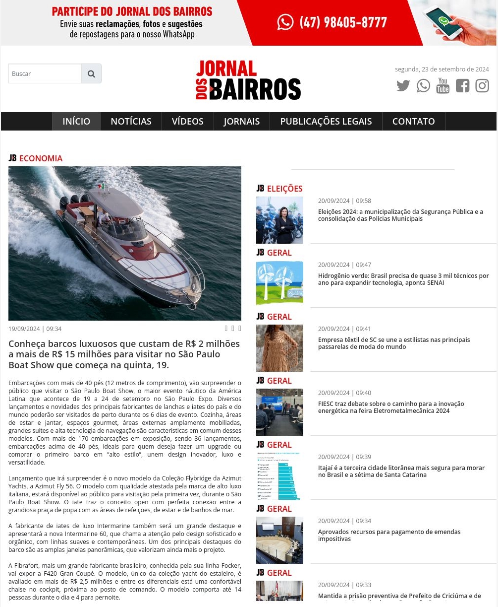 19/09/2024 - Jornal dos Bairros Itajaí