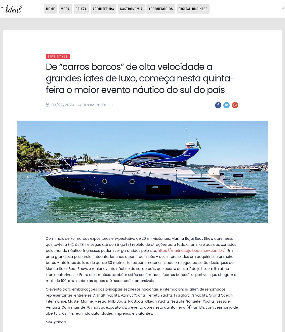 De "carros barcos" de alta velocidade a grandes iates de luxo, começa nesta quinta-feira o maior evento náutico do sul do país - Revista Ideal