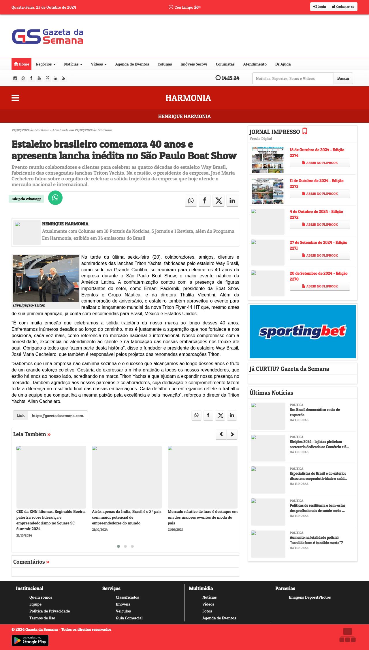 https://gazetadasemana.com.br/coluna/12768/estaleiro-brasileiro-comemora-40-anos-e-apresenta-lancha-inedita-no-sao-paulo-boat-show