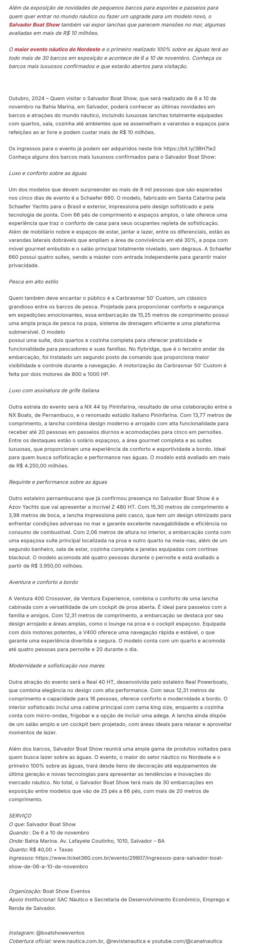 Evento: Luxo na Baía de Todos os Santos - SALVADOR NOTÍCIA