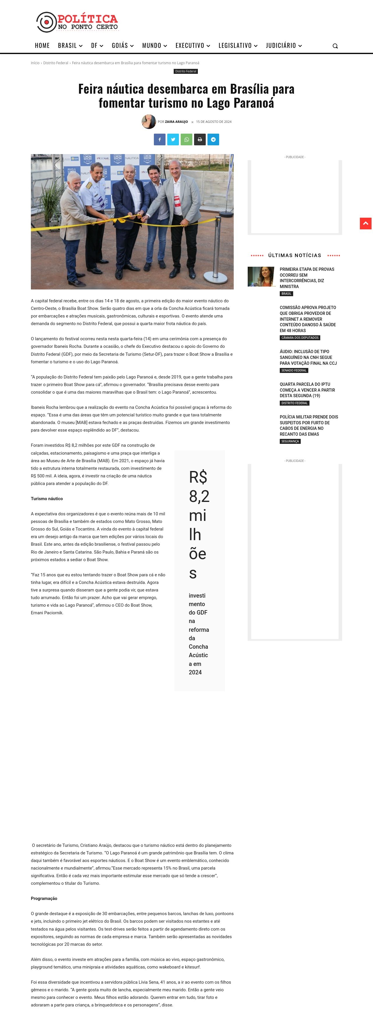 Feira náutica desembarca em Brasília para fomentar turismo no Lago Paranoá - Política no Ponto Certo