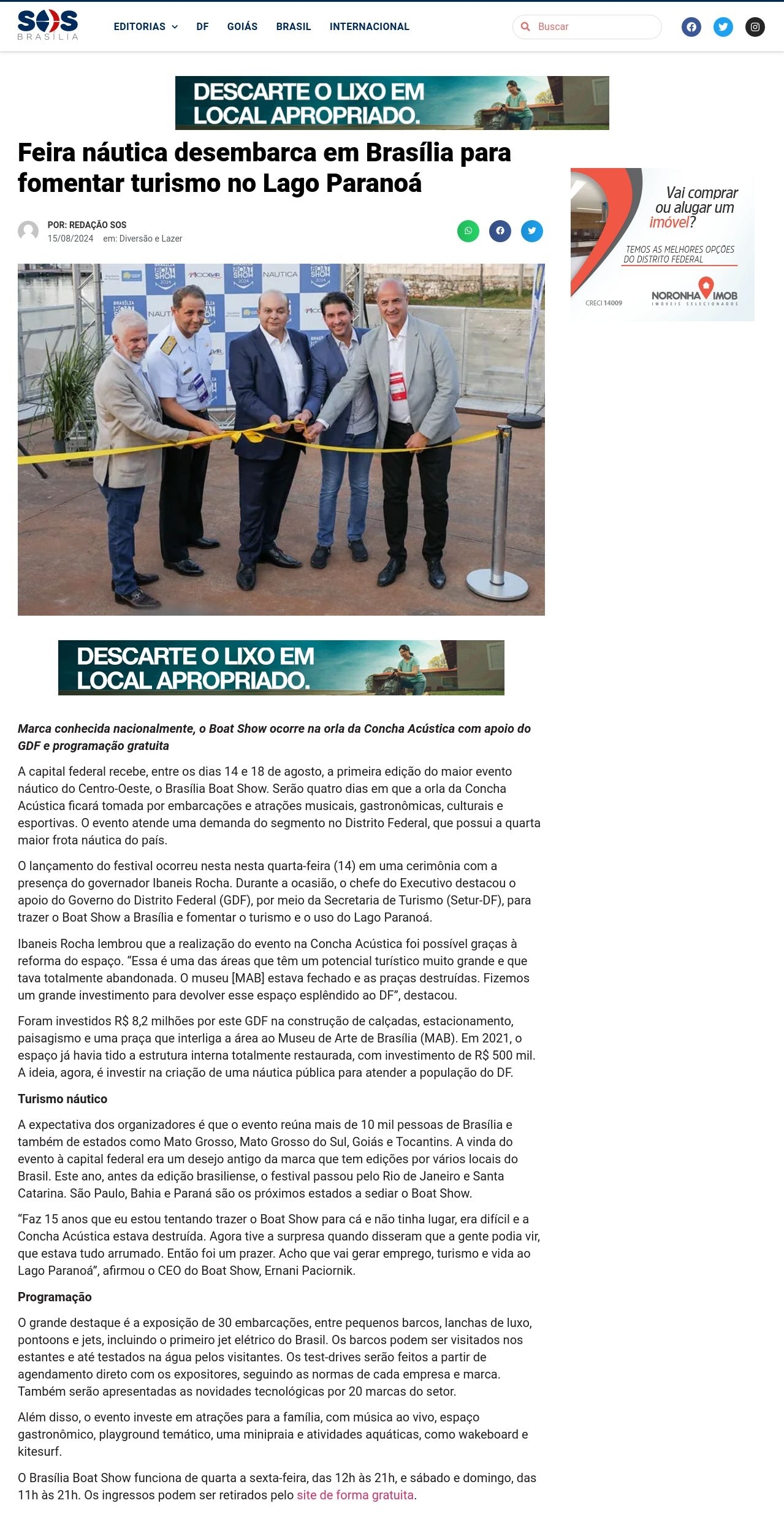 Feira náutica desembarca em Brasília para fomentar turismo no Lago Paranoá - SOS Brasília