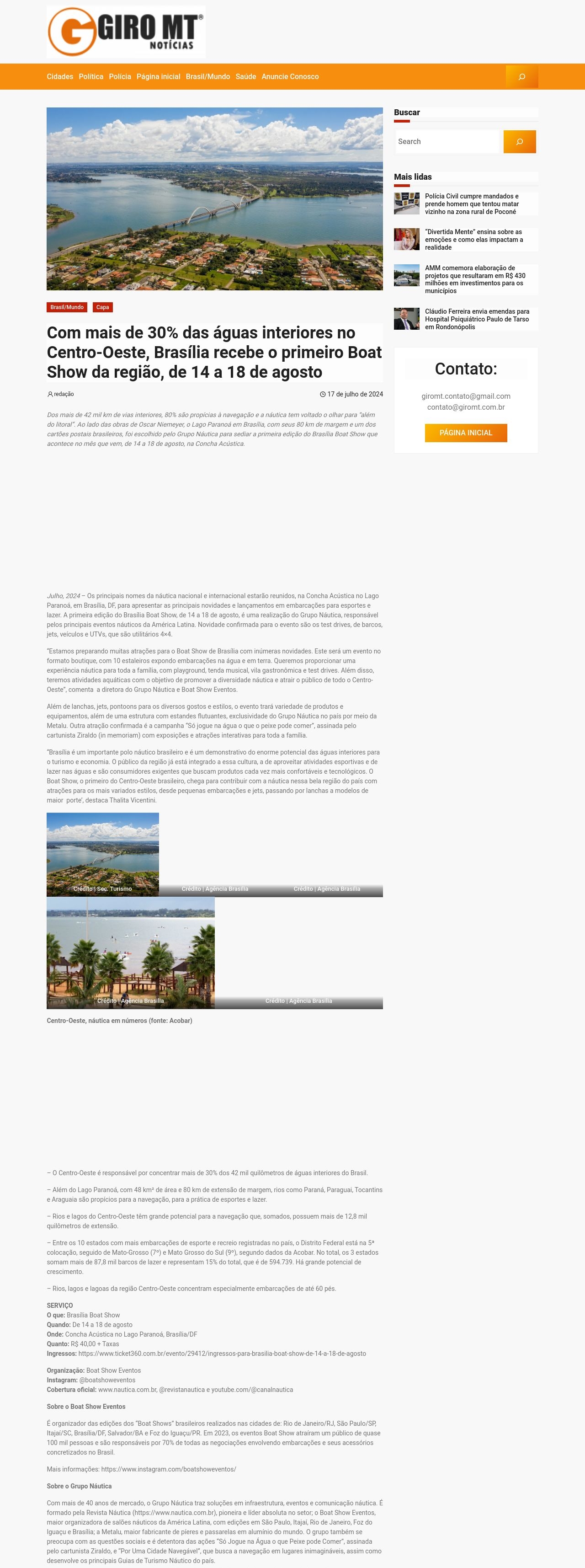 Giro MT Notícias - Com mais de 30% das águas interiores no Centro-Oeste, Brasília recebe o primeiro Boat Show da região, de 14 a 18 de agosto