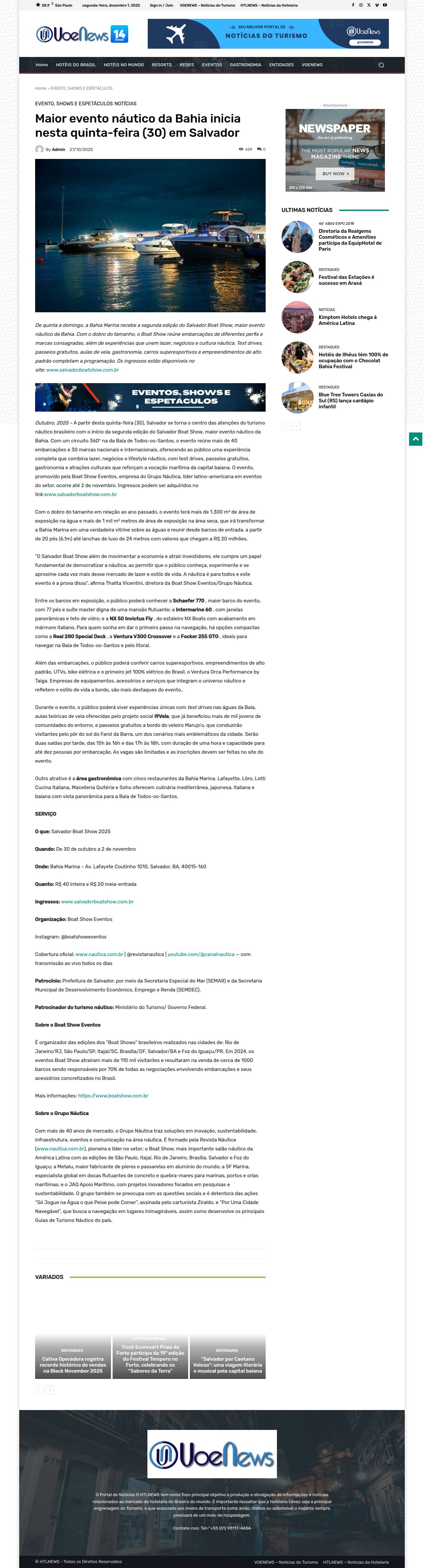 Maior evento náutico da Bahia inicia nesta quinta-feira (30) em Salvador VOENEWS - Notícias do Turismo