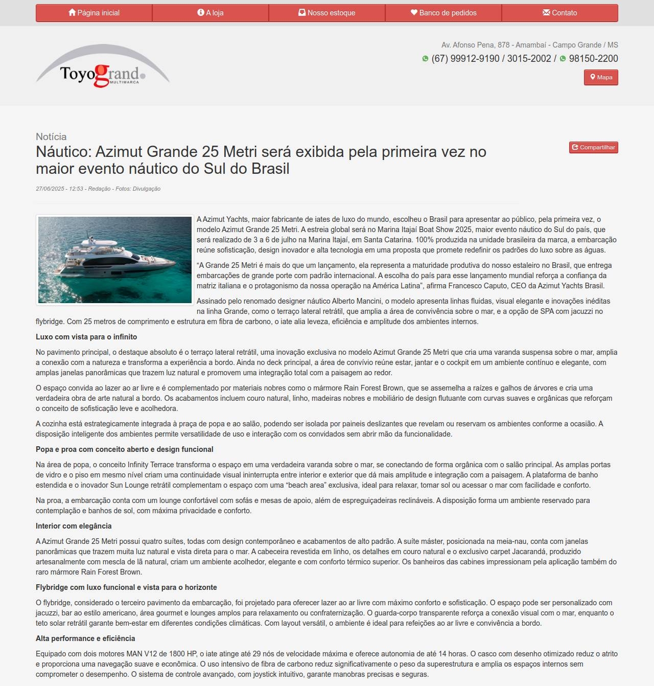 Notícia Náutico: Azimut Grande 25 Metri será exibida pela primeira vez no maior evento náutico do Sul do Brasil 27/06/2025