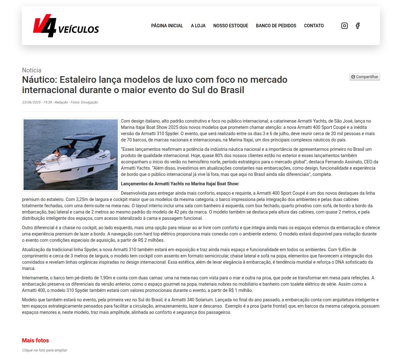 Notícia Náutico: Estaleiro lança modelos de luxo com foco no mercado internacional durante o maior evento do Sul do Brasil