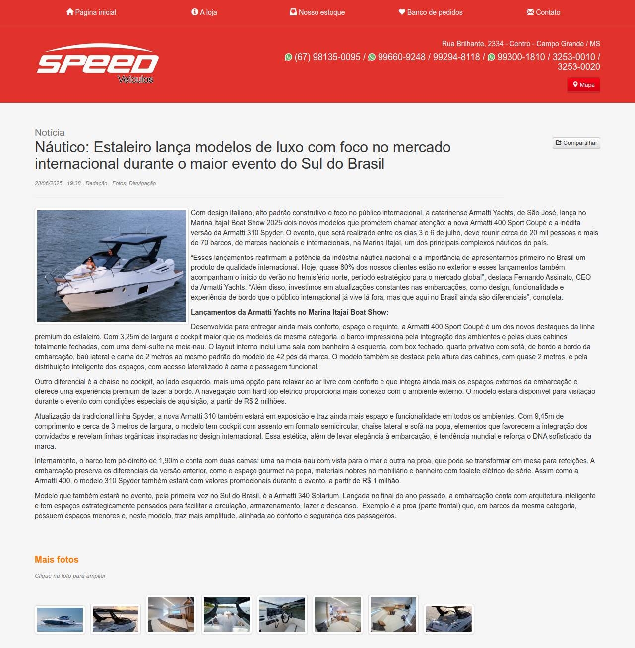 Notícia Náutico: Estaleiro lança modelos de luxo com foco no mercado internacional durante o maior evento do Sul do Brasil