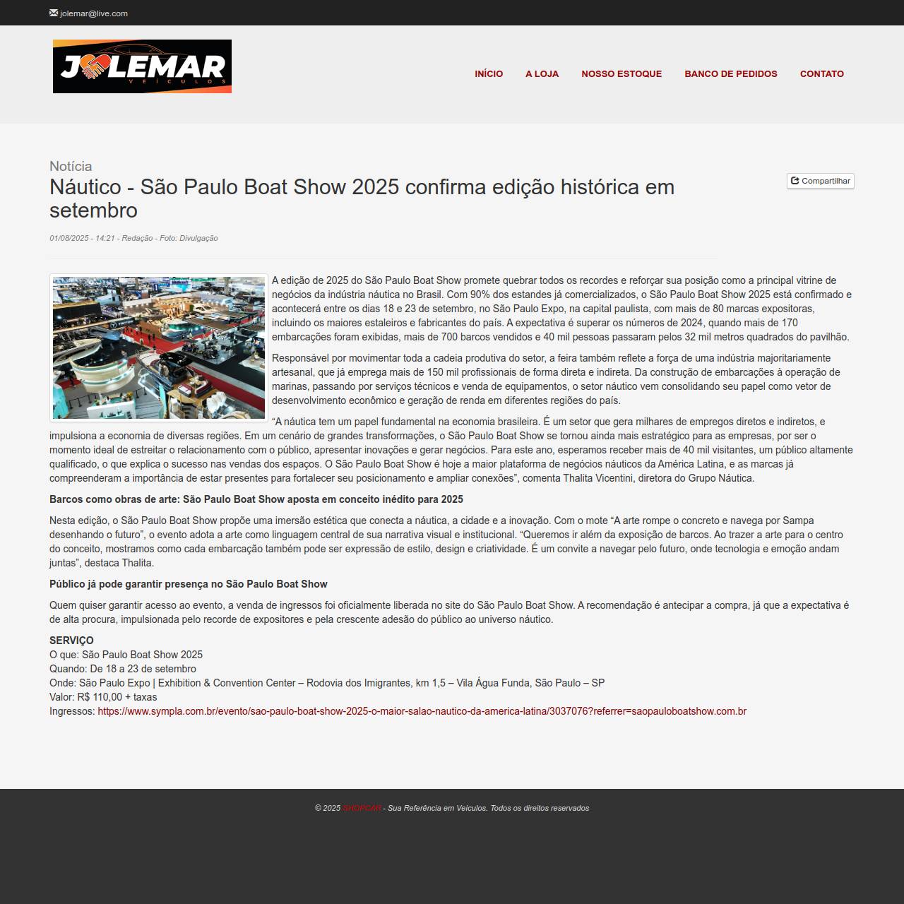 Notícia Náutico - São Paulo Boat Show 2025 confirma edição histórica em setembro 01/08/2025 - 14:21 - Redação - Foto: Divu