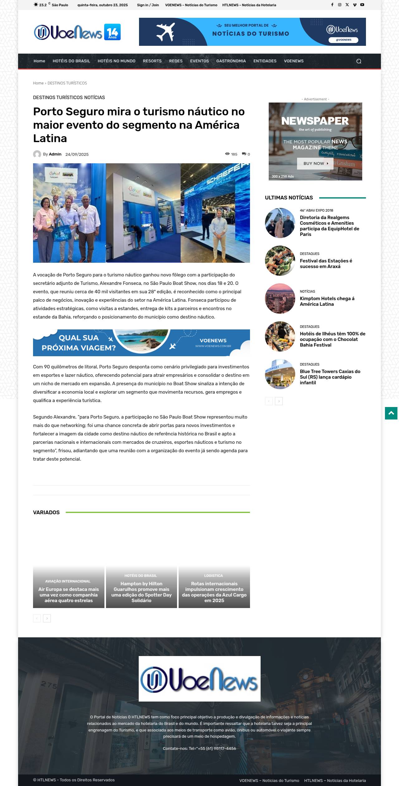 Porto Seguro mira o turismo náutico no maior evento do segmento na América Latina VOENEWS - Notícias do Turismo