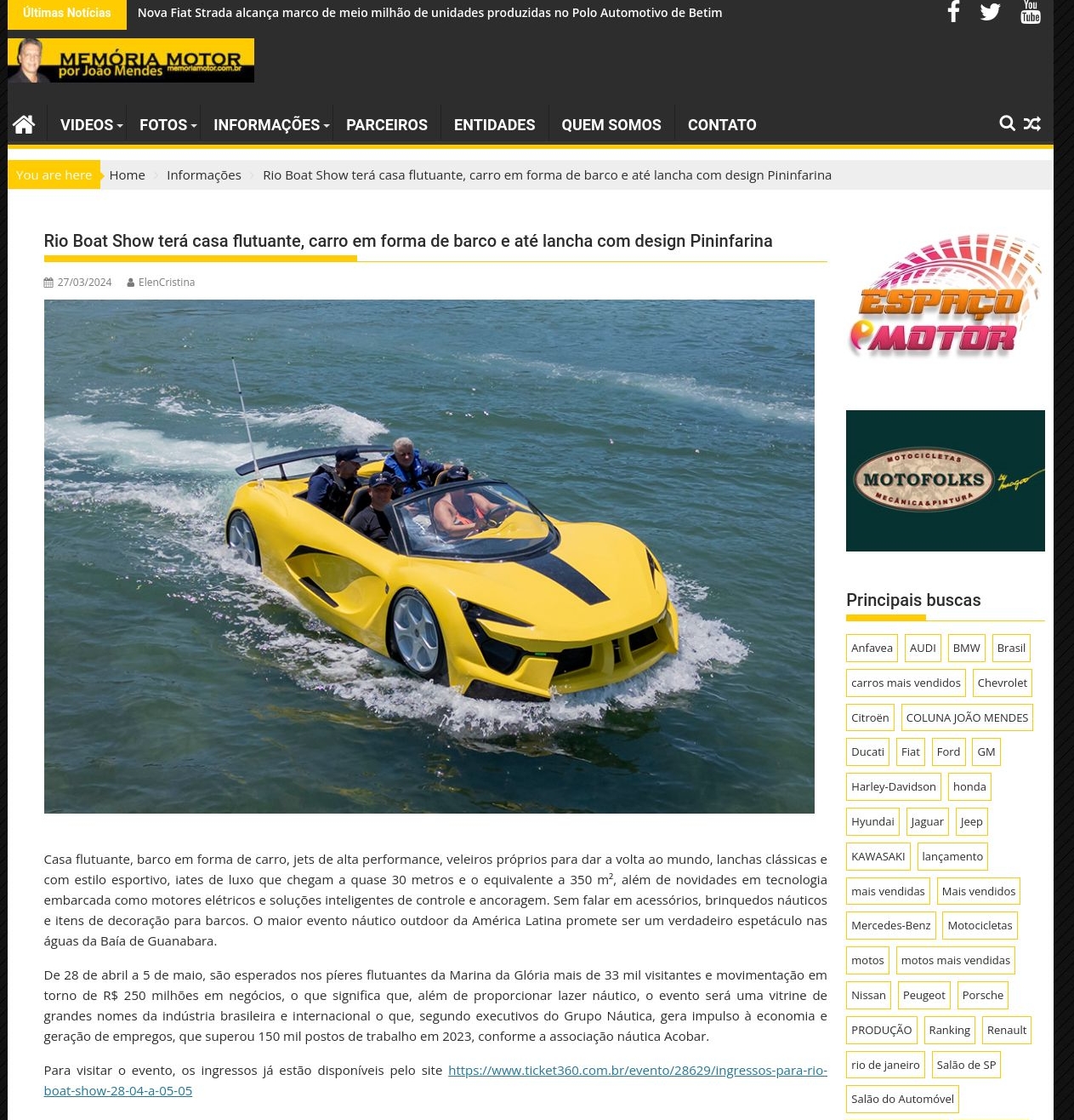 Rio Boat Show terá casa flutuante, carro em forma de barco e até lancha com design Pininfarina - Memória Motor