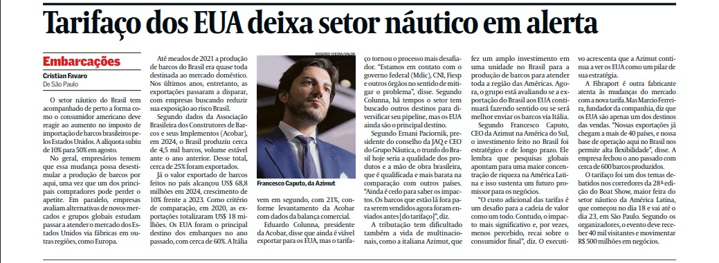 Tarifaço dos EUA deixa setor náutico em alerta